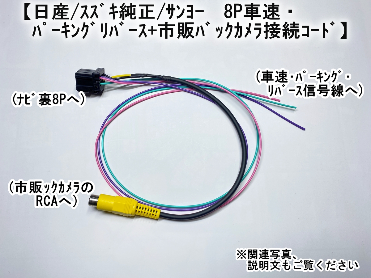 ニッサン/サンヨーナビ用 黒8P 車速・パーキング・リバース+市販カメラ接続コード